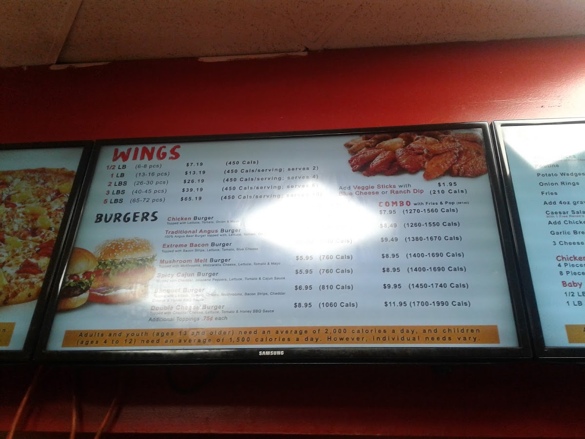 The menu at Wing Machine offers a variety of tasty options, from sides to burgers, and even dessert and beverages. For sides, you can choose from Coleslaw, Veggie Sticks, Poutine, Potato Wedges, and Onion Rings, each adding a satisfying complement to any meal. Their dessert selection includes a decadent Chocolate Lava Cake, perfect for satisfying a sweet tooth. Beverages are simple, with options like Pop, Juice, and Bottled Water. For those craving a burger, the restaurant serves an assortment of mouthwatering choices, such as the Chicken Burger, Traditional Angus Burger, Extreme Bacon Burger, Mushroom Melt Burger, and the zesty Spicy Cajun Burger. If you're looking for something extra, the menu also offers Ranch and a Combo for an enhanced dining experience.
